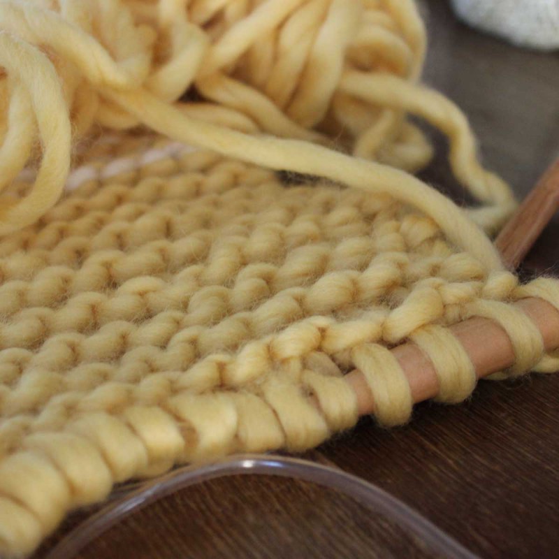 De trend voor het in een handomdraai breien van kussen hoezen, mutsen, sjaals of vesten.