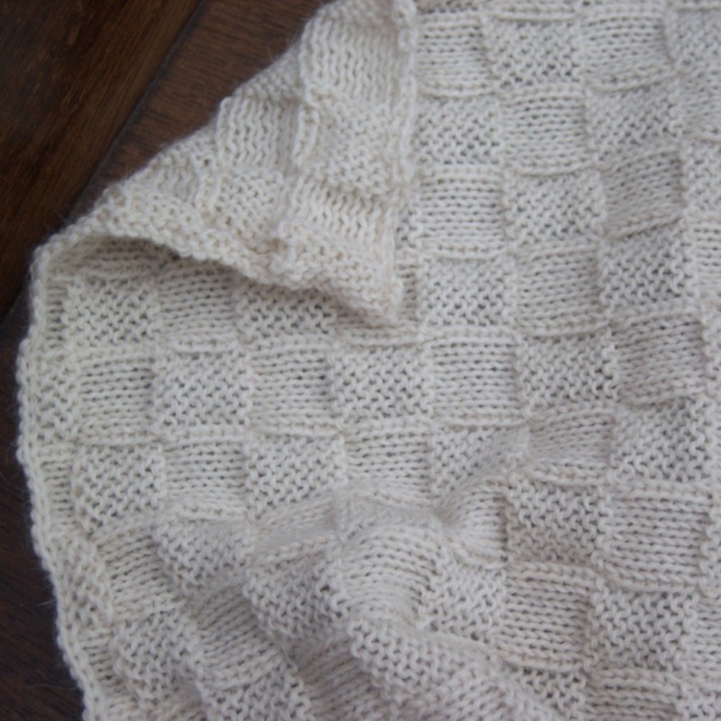 Sjaal van baby alpacawol , blokjes patroon, 30 x 170 cm.